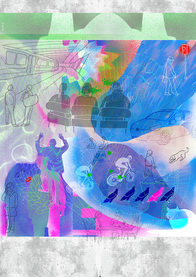 My entry to the Transport for London's illustration competition. The brief called for pieces that illustrate the many invisible sounds of the city.